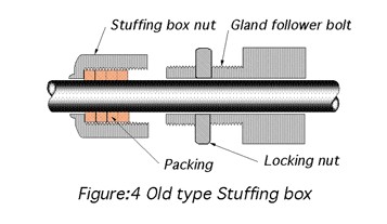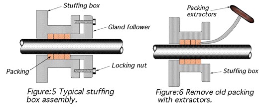 the shaft, pushing them into the stuffing box.